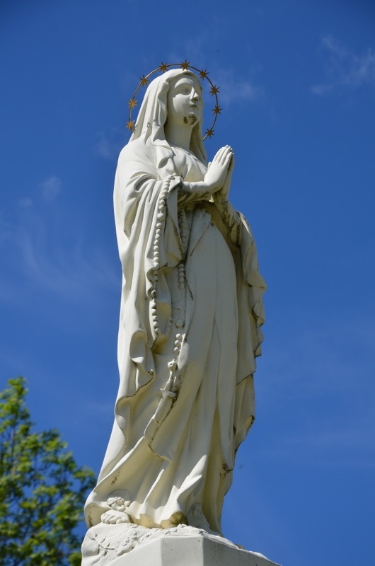 Wysoka kolumna stoi na placu poniżej nowego kościoła pw. Narodzenie Najświętszej Marii Panny. Kolumnę wieńczy rzeźba przedstawiająca Matkę Bożą Różańcową. Matka Boża przedstawiona jest z gwiezdną aureolą nad głową, dłońmi złożonymi do modlitwy i głównym atrybutem jakim jest w tym przypadku różaniec.