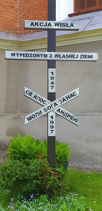 Drugi krzyż upamiętnia wypędzenie mieszkańców w ramach Akcji „Wisła”. Informują o tym napisy na krzyżu „AKCJA WISŁA / WYPĘDZONYM Z WŁASNEJ ZIEMI / 1947 – 1997”. Krzyż wzniesiony w 50 rocznicę masowych wysiedleń ludności cywilnej /Łemków/ przez ówczesne władze Polski Ludowej.
