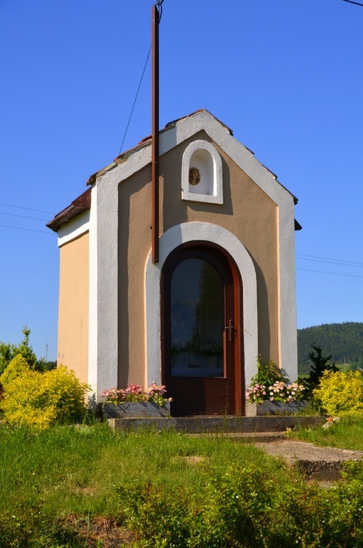 Kapliczka domkowa znajduje się przy głównej drodze biegnącej przez wieś w przysiółku Lipie. Jest to kapliczka wzniesiona na planie kwadratu, murowana, otynkowana i nakryta dwuspadowym daszkiem. Kapliczka nie ma okien, a do wnętrza prowadzą duże przeszklone drzwi. Nad wejściem wnęka zakończona łagodnym łukiem. Wewnątrz wnęki płaskorzeźba głowy Chrystusa.