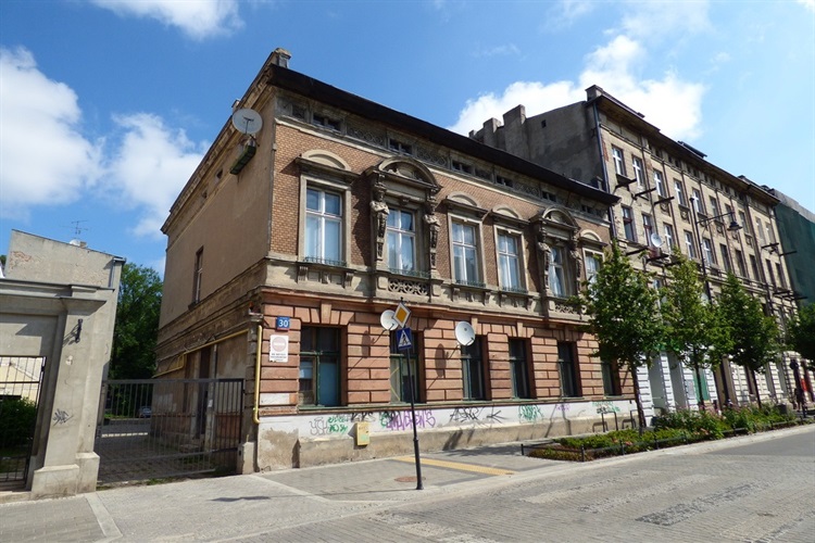 W roku 1888 Otto Starke, ówczesny właściciel nieruchomości położonej przy ul. Nawrot 30, posiadał projekt na budowę trzypiętrowej fabryki wyposażonej w warsztaty ręczne (arch. Ignacy Markiewicz). Kilka lat później tj. w roku 1898 na posesji wzniósł parterowy, murowany budynek dla lokomobili. Kolejne lata 1899-1900 przyniosły oświetlenie elektryczne (projekt technologa Joachima Friszmana) jego fabryki wyrobów wełnianych. W międzyczasie ok. roku 1893 wybudował jednopiętrowy, murowany, frontowy dom o bogato zdobionej fasadzie, który możemy podziwiać do dziś. Autorem planów architektonicznych był Franciszek Chełmiński. Pod w/w adresem w różnych latach funkcjonały m.in. fabryka chustek Bekmana, fabryka chustek Goldberga Mowsze i S-ki, fabryka wyrobów wełnianych i półwełnianych Rajnholda, fabryka wyrobów trykotowych Schichta (upaństwowiona w 1945 r.)