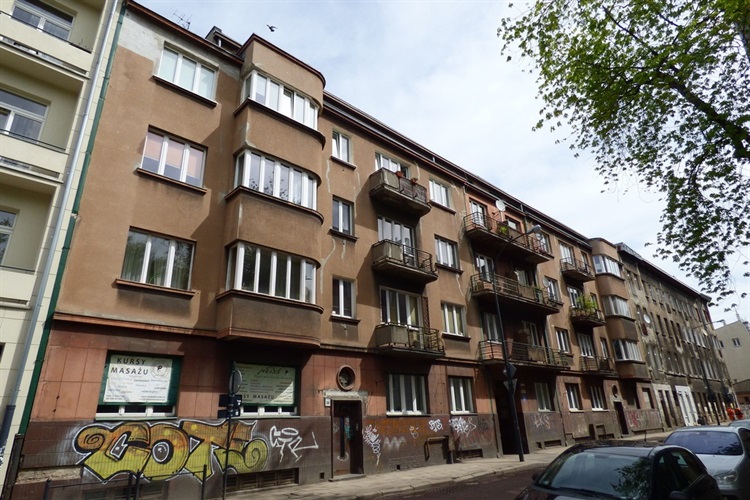 W Łodzi jest bardzo dużo budynków wybudowanych w tym stylu. Jednym się podobają, innym nie. Przykładem takiej modernistycznej bryły budowlanej jest kamienica znajdująca się przy ul. Jaracza 36 a/b (dawniej ul. Cegielniana). Została wzniesiona na dwóch działkach, jako trzypiętrowa, podpiwniczona z częściowo użytkowym poddaszem. Budowę zrealizowano 1936-1938 według planów architekta Izydora Fejnberga. Pierwotnie budynek był własnością Zjednoczonego Towarzystwa Handlowego Wyrobów Jutowo-Lnianych.