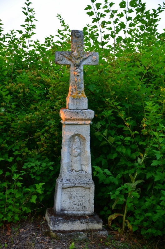 Krzyż stoi po lewej stronie drogi prowadzącej z Horyńca do wsi Radruż. Jest to typowy kamienny krzyż, jakich w tych okolicach można spotkać bardzo dużo. Jak wynika z inskrypcji, jego fundatorem jest mieszkaniec pobliskiej wsi Wasyl Dudycz. Podstawa krzyża ustawiona jest na dwustopniowym podwyższeniu. Na frontowej ścianie podstawy, w płycinie, wyryta jest inskrypcja w języku ukraińskim. Inskrypcja jest niekompletna, jednak można odczytać jej treść i po przetłumaczeniu brzmi "Krzyżowi Twojemu kłaniamy się Władco i święte Twoje zmartwychwstanie wysławiamy. Ten krzyż Wasyl Dudycz wystawił w roku 1903". Cokół wieńczący podstawę posiada półokrągło zakończoną płycinę z płaskorzeźbą stojącej postaci – być może jest to Matka Boska Bolesna. Na gzymsie cokołu stoi krzyż z płaskorzeźbą ukrzyżowanego Chrystusa, a na jego ramionach ozdoby w kształcie rozet.