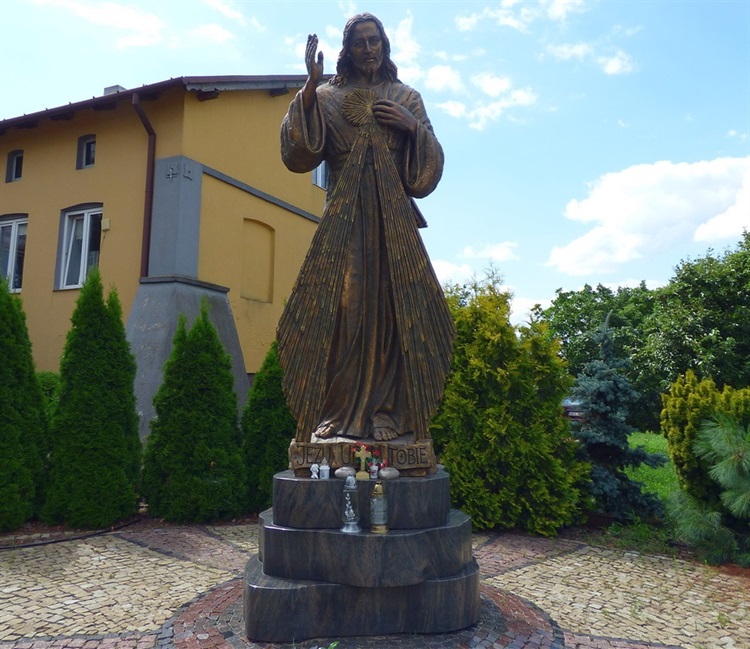 Przy drodze prowadzącej do kościoła pw. Św. Małgorzaty znajduje się monumentalna figura przedstawiająca postać Jezusa Miłosiernego. Fundatorami rzeźby są Małgorzata i Sławomir Kubiak z dziećmi w Roku Miłosierdzia Bożego 2016. Figura powstała w pracowni Małgorzaty Hejduk