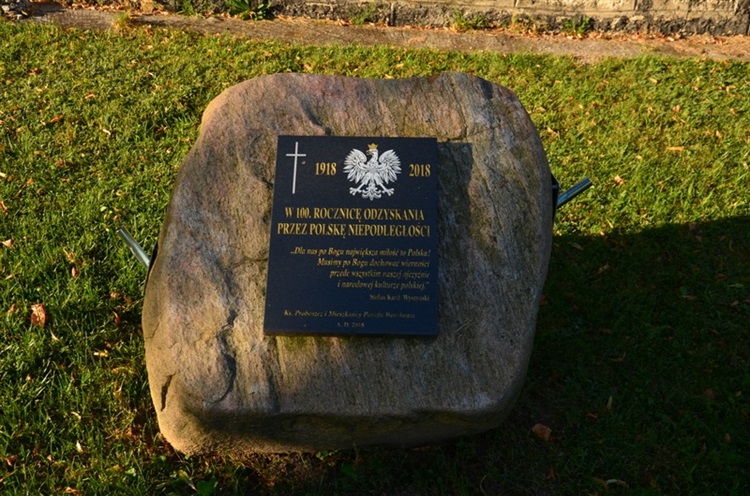 Obok kościoła pw. św. Józefa Robotnika w 2018 roku położona kamień, na którym przytwierdzono tablicę upamiętniającą 100-tną rocznicę odzyskania niepodległości przez Polskę. Na tablicy z wizerunkiem orła w koronie umieszczono między innymi treść informującą z jakiej okazji pomnik został postawiony - "1918 – 2018 / W 100 ROCZNICĘ ODZYSKANIA PRZEZ POLSKĘ NIEPODLEGŁOŚCI ".