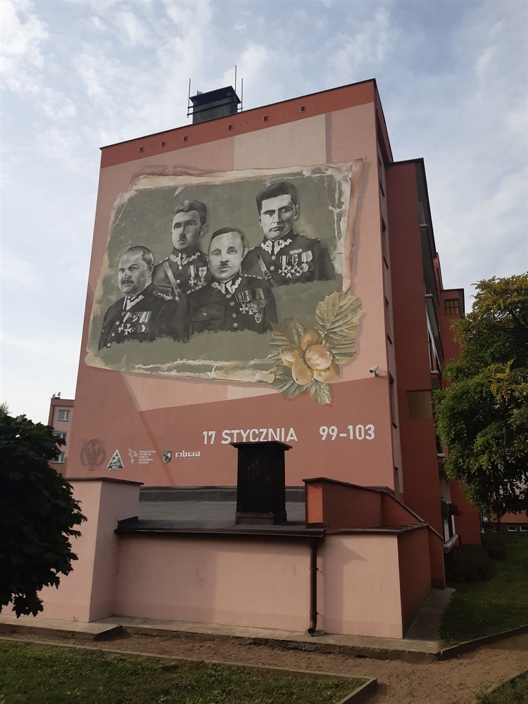 Mural znajduje się na jednym z bloków przy ulicy 17 Stycznia. Przedstawia wizerunki leszczyńskich dowódców. Jest tam generał Stefan „Grot” Rowecki, generał Józef Kustroń oraz pułkownicy Władysław Wiecierzyński i Ignacy Kowalczewski. Mural powstał z inicjatywy wojskowego stowarzyszenia Grot. Jego autorem jest Arkadiusz Anderjkow.