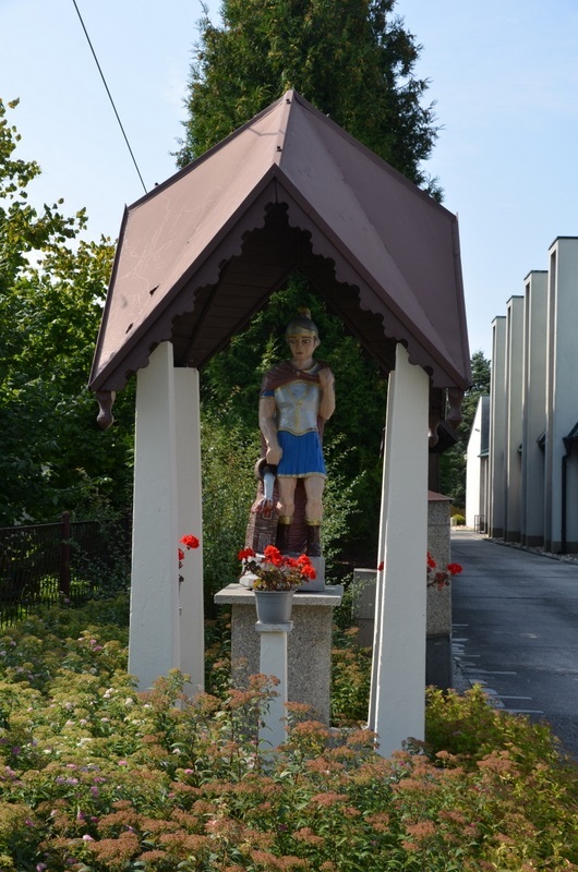 Dwie współczesne kapliczki zostały postawione przed kościołem pw. św. Floriana. Kapliczki wzniesione na rzucie kwadratu nakryte są wielospadowymi daszkami wspartymi na betonowych słupkach. Wewnątrz na prostych podstawach umieszczone zostały figury. W kapliczce po lewej stronie umieszczona została figura świętego Floriana – patrona kościoła. Święty w tradycyjnym stroju rzymskiego legionisty gasi pożar. W drugiej kapliczce umieszczona jest figura Matki Bożej.