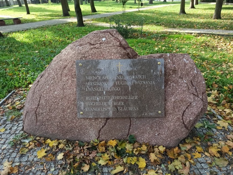 Po cmentarzu ewangelickim nie ma śladu ale w jego miejscu stoi pomnik upamiętniający miejsce spoczynku dawnych mieszkańców Tucholi wyznania ewangelickiego.