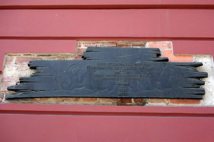 Na elewacji narożnej kamienicy znajdującej się przy zbiegu ulic: Świdnickiej i Ofiar Oświęcimskich znajduje się pamiątkowa tablica o ciekawej formie. Znajdująca się na niej inskrypcja mówi: „Opozycyjnym Radiowcom Podziemnych Rozgłośni Wrocławia z Lat 1981 – 1989 w XXV Rocznicę Emisji Programu Nadawanego Z Tego Miejsca”. Tablicę ufundował w 2009 r. NSZ SOLIDARNOŚĆ. U jej podnóża znajduje się krasnal Solidariusz Walczący nadający potajemnie przekazy radiowe.