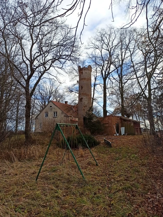 Tajemnicza wieża wokół której narosło wiele legend i opowieści, mawiają iż jest to pozostałość po dawnym XVI wiecznym pałacu Anny Radziwiłłówny lub jest niedoszłą wieżą Bismarcka. Stoi samoistnie obok pałacu który pochodzi z XIX w.