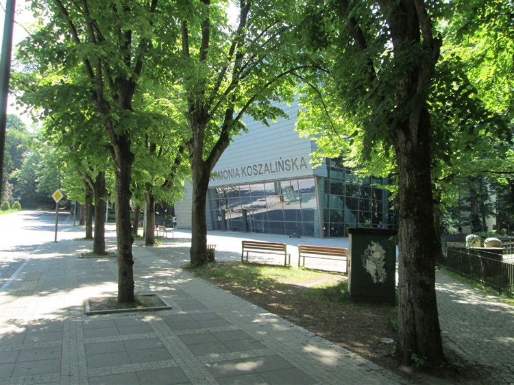 Budowa Filharmonii Koszalińskiej im. Stanisława Moniuszki rozpoczęła się w lipcu 2010 roku i trwała 38 miesięcy. Jest to trzypiętrowy budynek z salą koncertową mogącą pomieścić 520 widzów. Posiada estradę na 70-osobową orkiestrę oraz 40-osobowy chór.