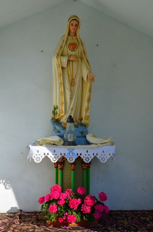 Kapliczka Matki Bożej Różańcowej przylega do zewnętrznej ściany nawy kościoła pw. Św.św. Piotra i Pawła. Kapliczka jest murowana na planie prostokąta z kamienia i cegły. Nakryta jest dwuspadowym dachem. Od frontu otwarte wejście do kapliczki zakończone ostrym łukiem. Wewnątrz na przyściennym ołtarzyku stoi figura Matki Bożej Różańcowej.