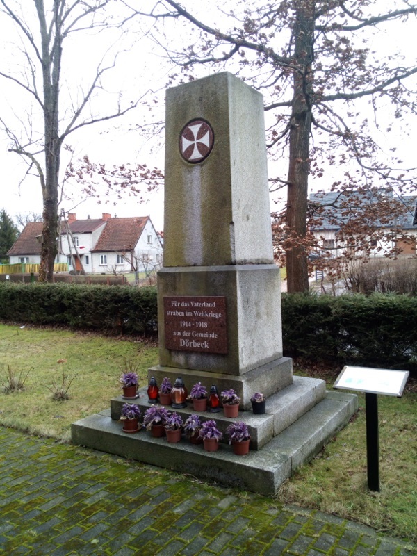 Jak w wielu miejscowościach należących przed II wojną światową do Niemiec, tak i w Próchniku (dziś część Elbląga) w latach 20. koło kościoła wzniesiono obelisk ku pamięci poległych w I wojnie światowej. Historia tego monumentu jest o tyle ciekawa, że w roku 1969 rozebrano go i przeniesiono do Elbląga, na teren Zakładów im. Wielkiego Proletariatu (przy ul. Piławskiej), czyniąc zeń pomnik XIX-wiecznej partii. Dopiero w 2015 r. staraniem mieszkańców Próchnika wrócił na właściwe mu miejsce. Napis głosi "Zginęli za ojczyznę w wojnie światowej 1914-1918 z gminy Próchnik".