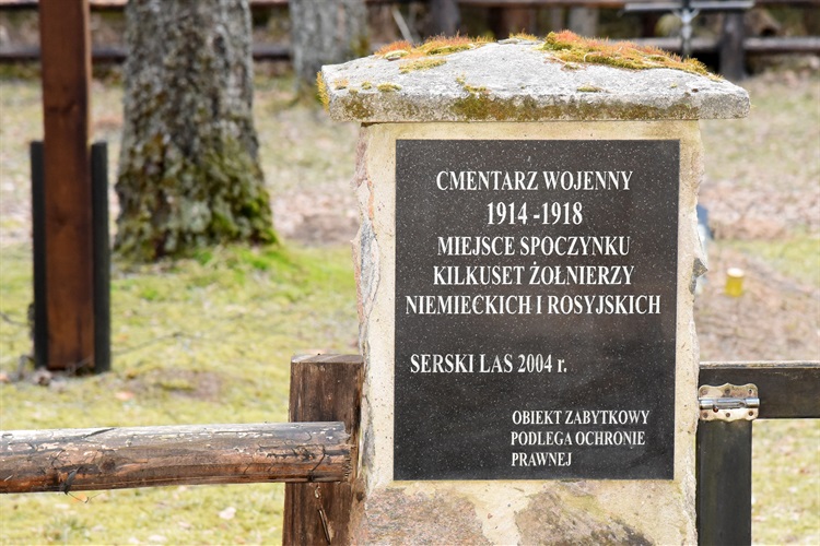 Położony jest na terenie Puszczy Augustowskiej, około 200 m od parkingu i szosy Augustów - Sejny. Kierunek oznaczony jest tablicą informacyjną. Założony na planie wydłużonego prostokąta, ogrodzony żerdziami, a na środku wśród nielicznych drzew znajduje się duży krzyż łaciński i prawosławny. Według tablicy umieszczonej przy furcie wejściowej w latach 1914 – 1918 zostało tu pochowanych kilkuset żołnierzy niemieckich i rosyjskich. Tożsamość ich nie jest znana. Jest tylko jedna mogiła oznakowana, w której wg opisu na umieszczonej tabliczce spoczywa: Ułan Polski; Czesław Maciejewski; zm. W 1920 r. Obiekt jest zabytkowy i podlega ochronie prawnej.
