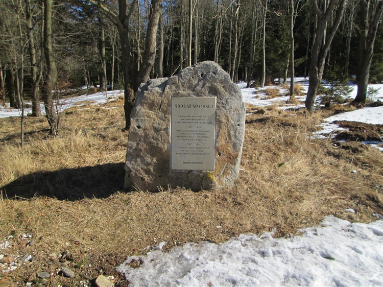 Niedaleko Schroniska PTTK „Jagodna” znajduje się głaz z tablicą pamiątkową „500 lat Spalonej”. Ufundowany został dnia 26.10.2013 roku, na pamiątkę spotkania byłych mieszkańców wsi Brandt z obecnymi mieszkańcami Spalonej. Na tablicy pamiątkowej umieszczono napis w języku polskim, niemieckim oraz czeskim.