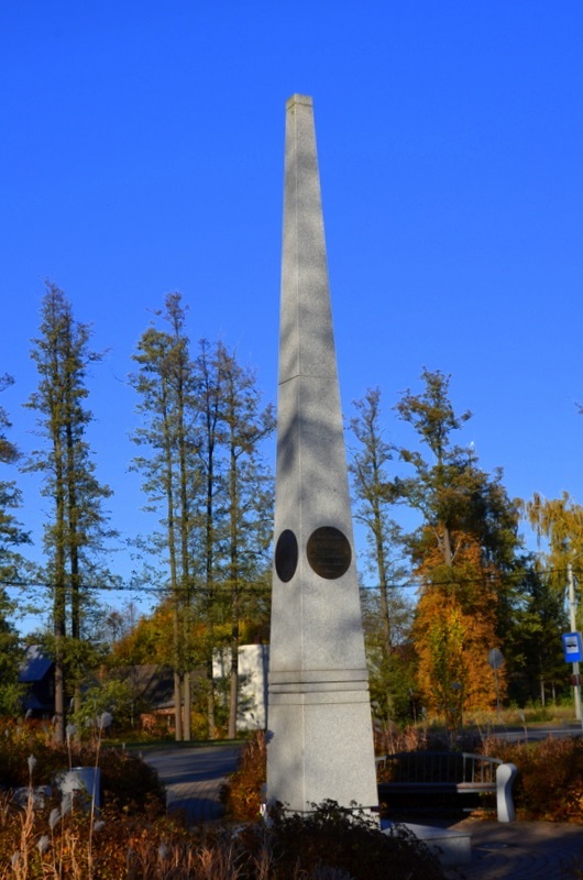Pierwotnie wysoka na 15 metrów piramida wykonana została z żelaza lanego i stała nad kanałem odprowadzającym wodę spod dawnej kuźnicy. Podczas II wojny światowej pomnik został przetopiony przez hitlerowców z przeznaczeniem na cele wojenne. W 2014 r. 15-metrowy pomnik został odtworzony. Wykonano go z granitu. Stoi obecnie na placu przed kościołem.