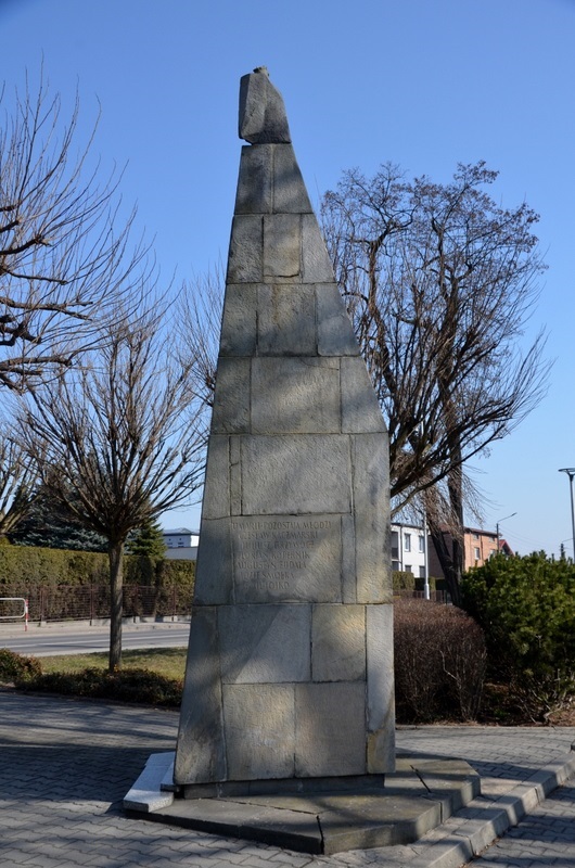Tytułowy pomnik został wzniesiony w okresie międzywojennym. W 1939 r. pomnik powstańców został zniszczony przez Niemców. Obecny pomnik wzniesiony w 1961 r. i powstał w miejscu poprzedniego. Jest to wysoki obelisk zwieńczony orłem. Na frontowej ścianie wyryta jest inskrypcja "CHWAŁA POWSTAŃCOM ŚLĄSKIM I KOMBATABTOM RUCHU OPORU". Powyżej inskrypcji krzyż z centralnie umieszczonym orzełkiem, na ramionach którego widnieją daty określające okresy powstań śląskich i II wojny światowej, a na pozostałych ścianach pomnika wyryto nazwiska poległych.