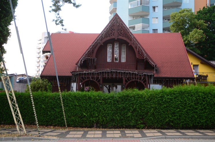 Jednopiętrowy budynek o bogato zdobionych elewacjach łączy w sobie motywy rosyjskie i alpejskie. Prawdopodobnie od początku wykorzystywany był jako prywatny dom mieszkalny. Wbrew pozorom nie jest to budynek drewniany lecz murowany z cegły, z zewnątrz odeskowany w sposób imitujący konstrukcję szkieletową.