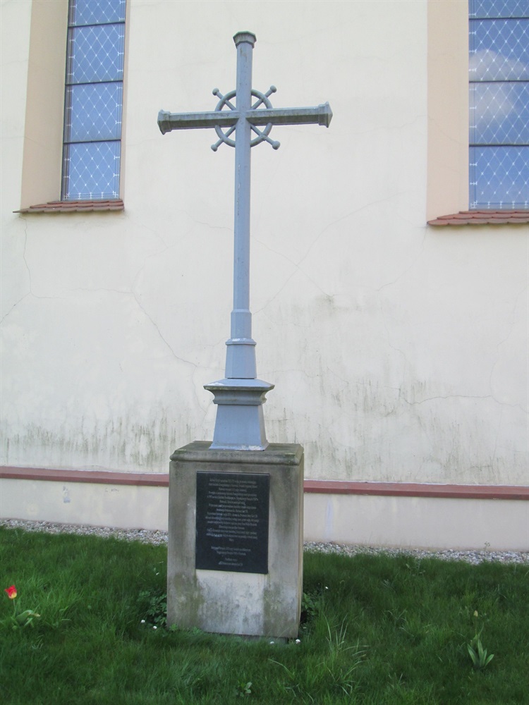 Żeliwny krzyż z przełomu XIX i XX wieku znajduje się przy kościele p.w. Niepokalanego Poczęcia NMP. Pierwotnie znajdował się na wieży kościoła ewangelickiego. W 1955 roku został przeniesiony na wieżę kościoła parafialnego p.w. Niepokalanego Poczęcia NMP. W 2013 roku podczas rekonstrukcji wieży według stanu sprzed wojny został zdjęty i poddany renowacji.
