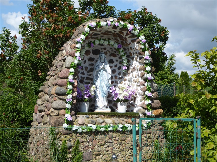 Figurka Matki Boskiej na skrzyżowaniu uliczek we wsi Bonów
