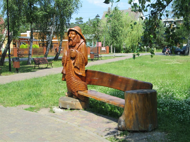 Przy głównej ulicy Wojska Polskiego prowadzącej do morza, znajduje się skwer, będący - oczywiście poza plażą - wspaniałym miejscem wypoczynku zarówno mieszkańców jak i odpoczywających w tej urokliwej miejscowości wczasowiczów. W jego centrum usytuowany jest piękny klomb kwiatowy. Jest tam wiele ławek, na których można odpocząć od plażowego zgiełku. Dwie z nich zasługują na szczególną uwagę. Jest to drewniana ławeczka z rzeźbą rybaka oraz druga, z rzeźbą wikinga.