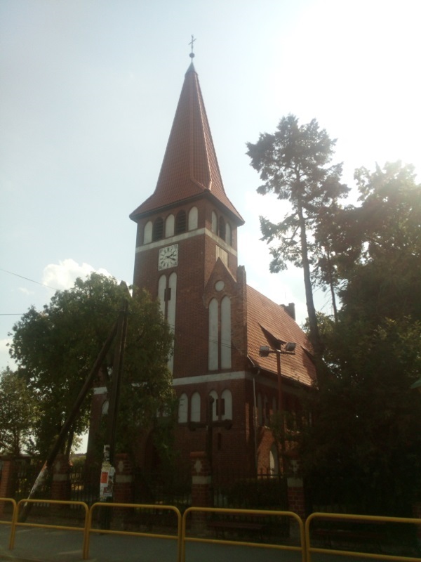 Dąbrowa Chełmińska znana jest jeszcze z początków panowania krzyżackiego (XIII w.). Obecnie istniejąca świątynia powstała dopiero na przełomie XIX i XX w. jako zbór luterański. Po II wojnie światowej została przejęta przez katolików i jest filią parafii w Boluminku. Kościół jest ceglaną, nieotynkowaną budowlą w stylu neogotyckim, z wieżą nad głównym wejściem. Wyposażenie jest głównie powojenne, zaś organy pochodzą z 1910 r.