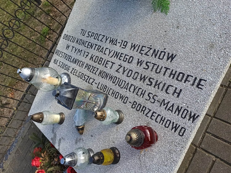 Ofiary "marszu śmierci". Jest to grób masowy jeńców obozu koncentracyjnego Stutthof, pomordowanych przez Niemców w styczniu 1945 roku. Spoczywa w nim 19 osób, w tym 17 Żydówek.