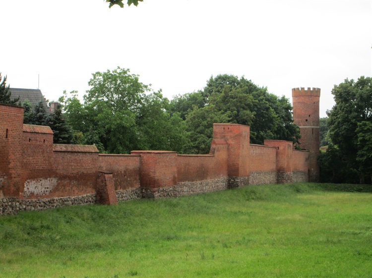 Miejskie mury obronne rozpoczęto budować w XIII wieku. Z tego okresu pochodzi dolna część kamienna. W XV wieku mury nadbudowano cegłą ceramiczną do wysokości od 7 do 9 metrów. Podzielone były basztami i czatowniami na 52 odcinki. Od strony zewnętrznej otoczono je wałami i fosami. Długość murów wynosi ponad 2200 metrów.