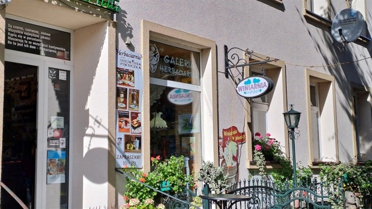 Galeria Herbaciarnie mieszcząca się przy ul. Marynarki Polskiej powstała w 1991 r. Galeria podzielona jest na dwie części. Na parterze urządzona jest herbaciarnia, a w XVIII wiecznej murowanej piwnicy znajduje się winiarnia. W okresie letnim do galerii przylega przytulny ogródek. W obiekcie stworzony został niepowtarzalny klimat. Tworzy go wystrój wnętrza z wiszącymi na ścianach obrazami i grafikami. Można tu napić się znakomitej herbaty, a w piwniczce lamkę dobrego wina. Herbaciarnia prowadzi także działalność kulturalną, organizując wernisaże, koncerty, wieczory poezji, jak i degustacje. Od 2016 r. herbaciarnia jest filią "Autorskiej Galerii Pod Strachem Polnym" Floriana Kohuta.