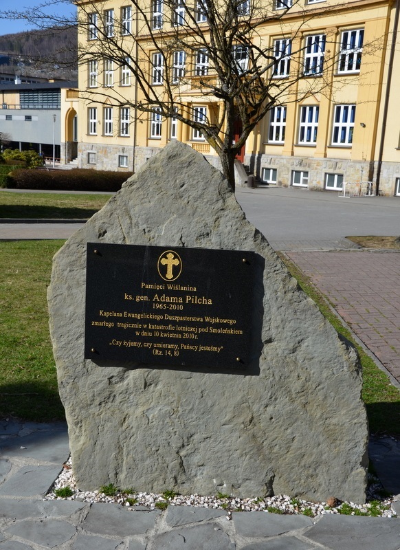 Adam Pilch to wiślanin, który zginął w katastrofie lotniczej pod Smoleńskiem. Pomnik upamiętniający księdza generała, usytuowany jest obok kościoła ewangelickiego św. Piotra i Pawła. Na głazie umieszczona jest tablica o treści "Pamięci Wiślanina ks. gen. Adama Pilcha 1965 – 2010 Kapelana Ewangelickiego Duszpasterstwa Wojskowego, zmarłego tragicznie w katastrofie lotniczej pod Smoleńskiem w dniu 10 kwietnia 2010 r.". „Czy żyjemy, czy umieramy, Pańscy Jesteśmy”