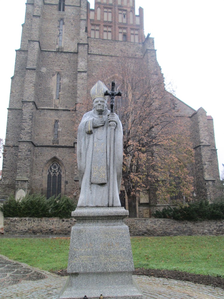 Pomnik Jana Pawła II znajduje się na placu jego imienia przed Bazyliką świętych Piotra i Pawła. Ufundowany został w 1997 roku przez kapłanów oraz wiernych Ziemi Strzegomskiej jako wotum wdzięczności.