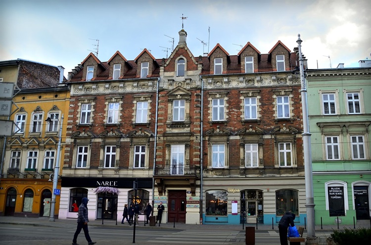 Kamienica wymurowana jest z cegły, częściowo otynkowana. Przykryta jest dachem mansardowym, adaptowanym na mieszkania z lukarnami od strony ul. Krakowskiej. Elewacja frontowa symetryczna, siedmioosiowa, z ulokowaną w osi centralnej bramą wjazdową i przelotową sienią. Oś centralna elewacji w formie pseudoryzalitu, nad bramą umieszczony ozdobny balkon wsparty na konsolach, na szczycie trójkątny przyczółek. Pod dachem ozdobny, tynkowany gzyms z pseudokonsolami i dekoracjami stiukowymi. Na parterze znajdują się lokale handlowe, na piętrach i poddaszu mieszkania i lokale biurowe.