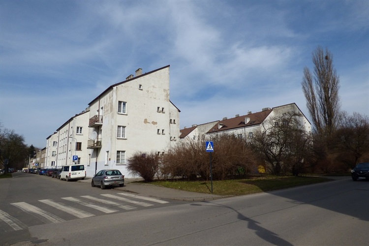 Przy ul. Podmiejskiej 16 i 16a (dawniej ul. Dolna) znajdują się dwa rzędy piętrowych domów o "rozczłonkowanych bryłach". Pierwotnie były one zamieszkane przez pracowników miejskich. Projekt ich budowy powstał w 1926 r. na desce kreślarskiej warszawskiego architekta Juliana Lisieckiego (ur. 1881 w Aleksandrowie Kujawskim; zm. w 1944 w Warszawie ?). Ich budowę rozpoczęto w ok. 1928 r.