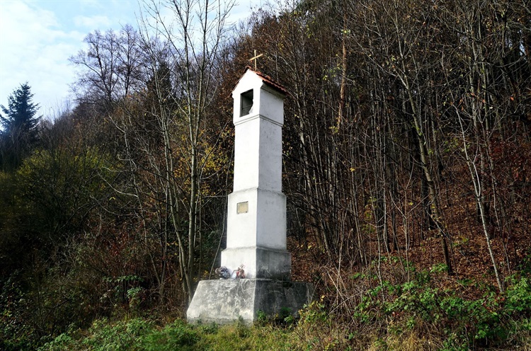 Jego rodowód sięga XVII wieku (prawdopodobnie 1610 r.), co czyni go jednym z najstarszych myślenickich zabytków. W 1862 roku został odnowiony przez Wiktora Kalinowskiego, o czym informuje napis wyryty na kolumnie. Słup składa się z 4 ciosów kamiennych zwężających się ku górze, na których ustawiona jest kapliczka z wnęką służącą niegdyś prawdopodobnie do umieszczania światła. Obecnie we wnęce znajduje się ludowa figurka Chrystusa Frasobliwego.
