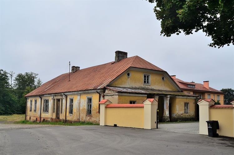 W II poł. XIX wieku budynek został gruntownie przebudowany. Wymurowany z cegły, parterowy budynek z użytkowym poddaszem ma kształt wydłużonego prostokąta. Od strony wschodniej i zachodniej wyposażony był w drewniane ganki, z których przetrwał tylko ten zachodni, przebudowany na murowany. Od południa znajduje się weranda z dachem opartym na czterech kolumienkach, zaś od północy dwa alkierze.