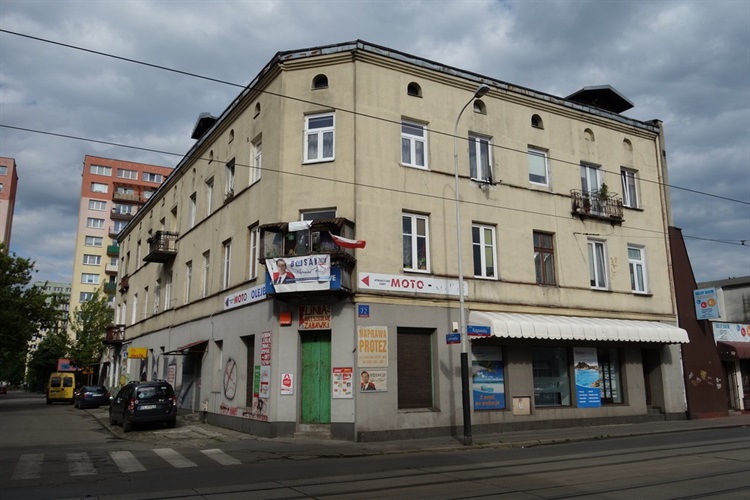 Narożna, dwupiętrowa kamienica znajdująca się przy ul. Rzgowskiej 72 róg z ul. Lelewela (dawniej ul. Wąska) została wzniesiona prawdopodobnie po 1914 r. Około 1920 r. w jej parterowej części Chaim Fuks prowadził zakład krawiecki natomiast Sina Grauzam sklep kolonialno-spożywczy.