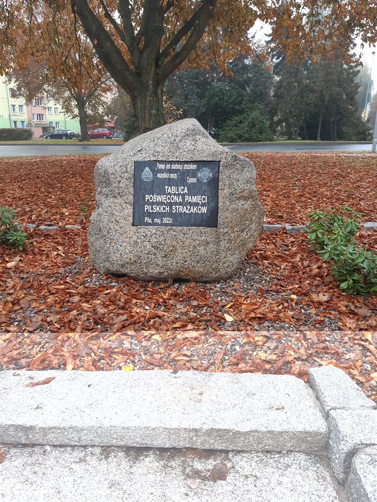 Przy Parku na Wyspie, na skwerze przy ulicy Wodnej znajduje się Skwer Strażaków. W maju 2022 roku odsłonięto tam obelisk z tablicą upamiętniającą pilskich strażaków, którzy przez lata pełnili służbę w jednostkach miasta. Obelisk powstał dzięki staraniom grupy emerytowanych oficerów straży pożarnej pod przewodnictwem Marka Andruszkiewicza, radnego Rady Miasta Piły. Na tablicy widnieje sentencja Cycerona „Pamięć jest skarbnicą i strażnikiem wszystkich rzeczy”.