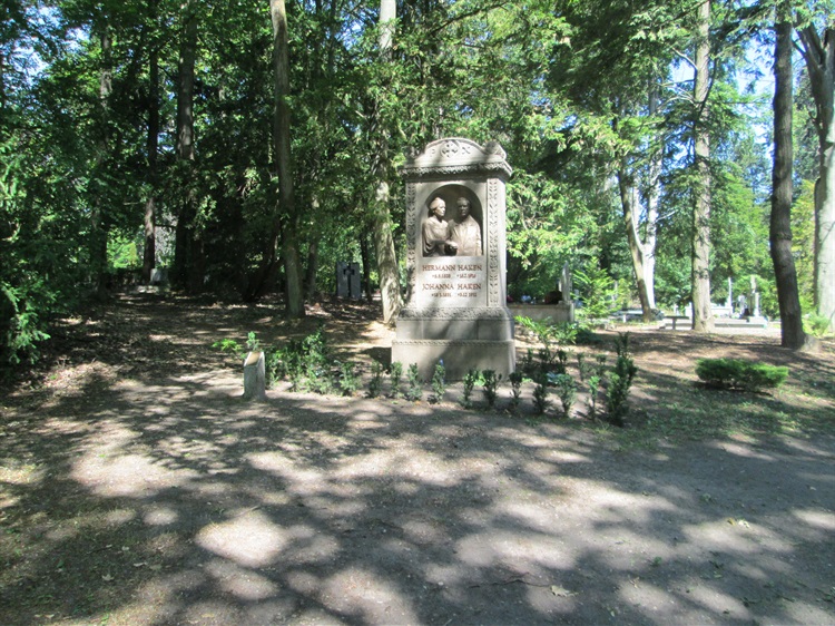 Nagrobek nadburmistrza Szczecina Hermanna Hakena i jego żony Johanny znajduje się na cmentarzu centralnym przy lapidarium. Nagrobek powstał w 1916 roku według projektu szczecińskiego rzeźbiarza prof. Ludwiga Manzla. Wykonany jest z piaskowca przy zastosowaniu technik rzeźbiarskich i kamieniarskich. Pierwotnie stał na kwaterze 20d. Po 1945 r. pozbawiony wizerunków i napisów. W 2006 roku został poddany konserwacji i przeniesiony w obecne miejsce.