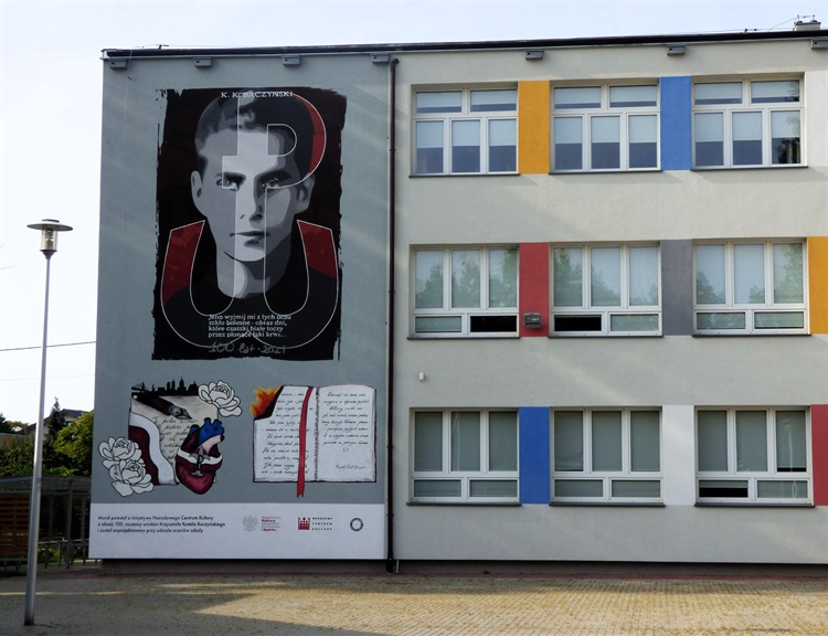 W warszawskiej dzielnicy Ursus znajduje się Szkoła Podstawowa 381 im. Krzysztofa Kamila Baczyńskiego. Na ścianie budynku szkolnego 22 stycznia 2022 r. - w 101 rocznicę urodzin - odsłonięto mural upamiętniający patrona. Powstał on z inicjatywy Narodowego Centrum Kultury. Wykonawcą była firma Good Looking Studio znana z kilkuset takich malowideł w Polsce i za granicą. Firma zorganizowała konkurs na projekt, a wzięli w nim udział uczniowie z najstarszych klas. Dzieło jest kompilacją prac trójki ósmoklasistów - Mai Ciężak, Mai Czułowskiej i Kamila Polaka.