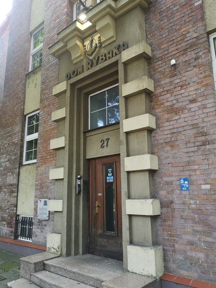Dom Rybaka został wybudowany w latach 1929-1932 według projektu Wacława Tomaszewskiego. Początkowo był to Dom Marynarza Polskiego, nazwa została zmieniona już po wojnie. Oś główna tego wolno stojącego budynku podkreślona geometrycznym detalem w stylistyce późnego polskiego Art-Déco, czasem określanego nawet „stylem państwowym II Rzeczpospolitej”. Ogólnie, jest to przykład architektury modernistycznej.