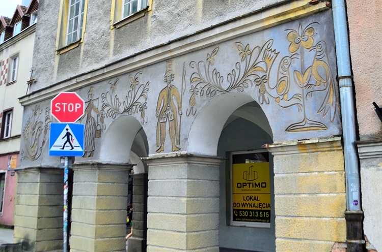 Tak stało się m.in. z największym sgraffitem, autorstwa Eugeniusza Kochanowskiego, znajdującym się niegdyś na elewacji Regionalnej Dyrekcji Lasów Państwowych przy ul. Kościuszki. Do najbardziej efektownych, zachowanych do dzisiaj można zaliczyć sgraffita na położonych przy Starym Rynku kamienicach nr 17, 18 i 32. Bogaty opis olsztyńskich sgraffit można znaleźć w artykule Zbigniewa Czernika a także na blogu Jerzego Majewskiego.