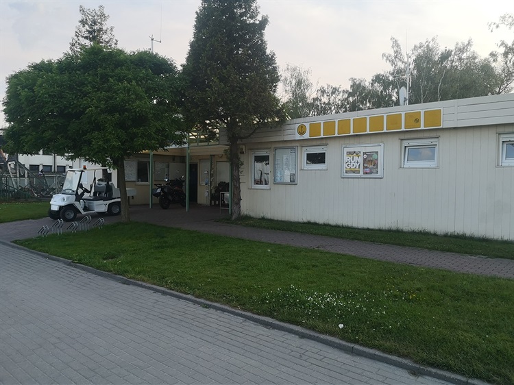 Mały budynek bosmanatu obsługujący gdyńską marinę przy nabrzeżu Beniowskiego.