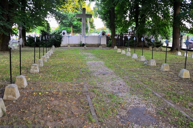 Na cmentarzu, będącym wydzieloną kwaterą cmentarza parafialnego o powierzchni około sześciu arów, spoczywa 74 żołnierzy poległych w 2014 roku, w tym 57 z armii austro-węgierskiej i 9 z armii rosyjskiej a także 8 żołnierzy Wojska Polskiego z miejscowego garnizonu. Centralnym punktem cmentarza jest betonowa ściana pomnikowa zwieńczona betonowym krzyżem łacińskim. Groby oznaczone są betonowymi stelami z osadzonymi na nich żeliwnymi krzyżami lotaryńskimi i łacińskiimi.