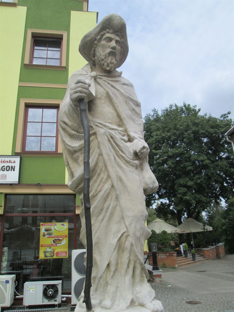 Pomnik św. Jakuba (patrona Olsztyna) znajduje się przy Targu Rybnym. Jego odsłonięcie miało miejsce 25 lipca 2004 roku. Autorem jest olsztynianin, Rafał Grabowski, absolwent Gdańskiej Akademii Sztuk Pięknych. Figura świętego o wysokości 135 cm wykonana jest z kamienia, sztucznego piaskowca, dodatkowo patynowanego, natomiast laskę wykonano z brązu. Umieszczona jest na cokole o wysokości 150 centymetrów.