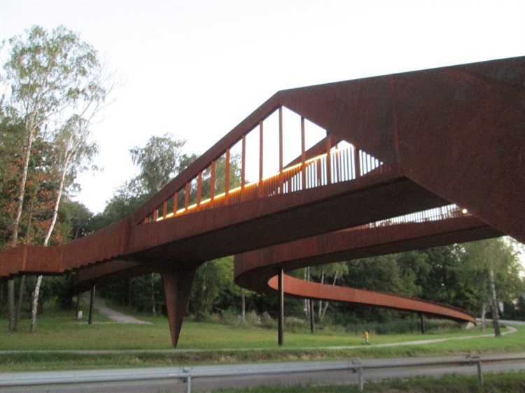 Kładka pieszo rowerowa znajduje się w południowej części miasta. Wykonana jest ze stali według projektu pracowni architektonicznej Lewicki Łatak z Krakowa. Ma kształt falującej taśmy. Atrakcyjnie wygląda w po zmroku ze względu na oświetlenie. Została oddana do użytku w 2021 roku.