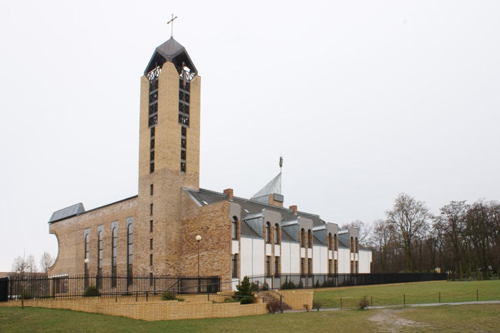 Współczesny duży kościół z wysoką wieżą oraz dużym przyległym centrum konferencyjnym. Parafia erygowana w 1984.