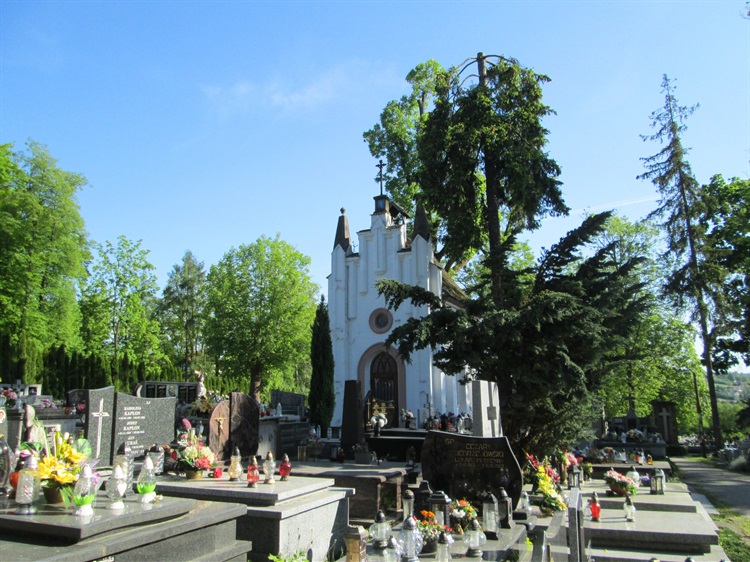 Cmentarz parafialny znajduje się przy ulicy Władysława Orkana. Powstał w I poł. XIX wieku. Jest to obiekt zabytkowy prawem chroniony. Wpisany został do rejestru zabytków pod numerem A677. Na uwagę zasługuje wiele zabytkowych nagrobków. Część nekropoli zajmuje cmentarz wojenny nr 233 będący kwaterą żołnierzy poległych w I wojnie światowej. Spoczywa tam 17 żołnierzy austro-węgierskich i 26 rosyjskich w 9 grobach pojedynczych i 5 zbiorowych. Warto zwrócić uwagę na pomnik Bojownikom o Wolność i Niepodległość Polski. Niedaleko głównego wejścia znajduje się kaplica grobowa Juliana Zubrzyckiego wzniesiona w 1892 roku w stylu neogotyckim.