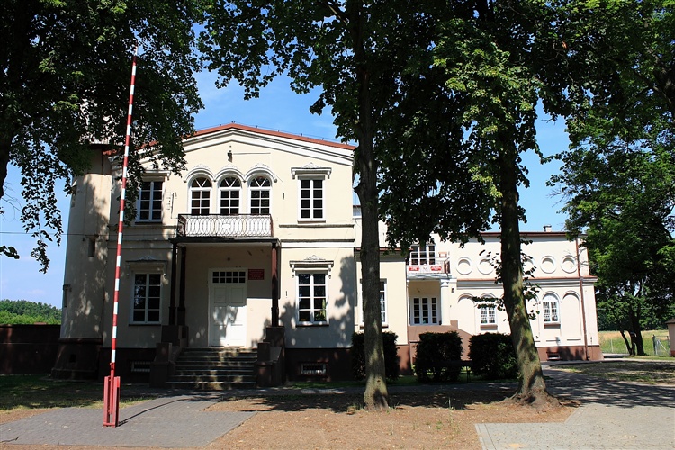 Dwór (XIX w.) z parkiem krajobrazowym.