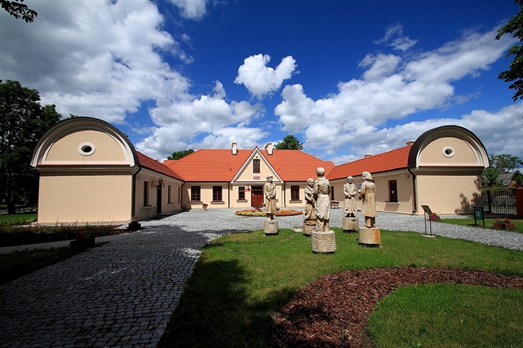 Został wybudowany jako budynek parterowy, murowany, otynkowany, na planie prostokąta z wydłużonymi prostopadłymi skrzydłami po bokach. Pośrodku został umieszczony korpus główny z trójosiowym ryzalitem, zwieńczony trójkątnym szczytem. Pokryty został dachem czterospadowym nad korpusem głównym i dwuspadowym nad skrzydłami bocznymi. Układ wewnętrzny pomieszczeń jest dwutraktowy.