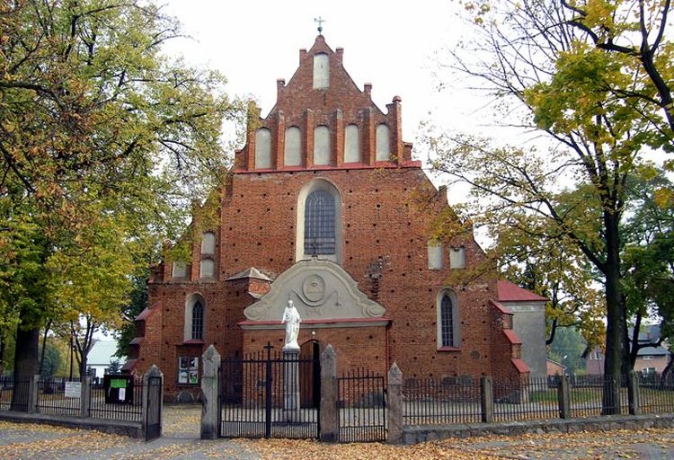 Jest to orientowana, trójnawowa, bazylikowa świątynia późnogotycka wymurowana z cegły w układzie gotyckim z użyciem zendrówki układanej we wzór rombowy oraz dużych, dekoracyjnych kamieni polnych w licu elewacji i szkarp, m.in.: kamień młyński w prezbiterium. Częściowo otynkowana, posiadająca w ścianach otwory maculcowe. Prezbiterium nizsze od nawy głównej, jednak tej samej szerokości, trójprzęsłowe, zamknięte ścianą prostą. Korpus nawy trójprzęsłowy z: od wschodu - kaplicą świętej Anny, od zachodu - kruchą z końca XV w., od północy - kruchtą z 1837 r. Wnętrze. Nawy boczne połączone z główną parami półkolistych arkad z profilowanymi archiwoltami, wspartych na czworobocznych filarach z niskimi toskańskimi pilastrami. Okna zamknięte ostrołukowo w rozglifionych, tynkowanych wnękach zamkniętych półkoliście. W elewacji północnej przy kruchcie wmurowana w ścianę stara kropielnica granitowa. Ołtarze główny i boczne barokowe z obrazami wykonanymi od wieku XVIII do czasów współczesnych, przedstawiającymi m.in.: świętego Piotra, świętych Kryspina i Kryspiniana, świętego Antoniego Padewskiego, św. Izydora Oracza. Wśród rzeźb: popiersie Boga Ojca i figur a św. Michała Archanioła. Warto zwrócić uwagę na kamienny, manierystyczny nagrobek Jędrzeja Noskowskiego - starosty różańskiego i makowskiego.