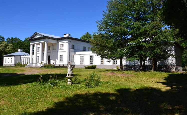 Klasycystyczny, wymurowany z cegły i otynkowany, zwrócony frontem w kierunku południowym. Z pięcioosiowym korpusem głównym, przed którym od frontu pokaźny portyk złożony z czterech kolumn toskańskich. Nad nimi trójkątny przyczółek z gzymsem. Na narożach i ścianie północnej pilastry toskańskie oraz dość proste belkowanie. Kondygnacje oddziela gzyms kordonowy. Całość pokryta jest niskim dachem czterospadowym. Przed elewacją ogrodową (północną) taras z żeliwną balustradą.